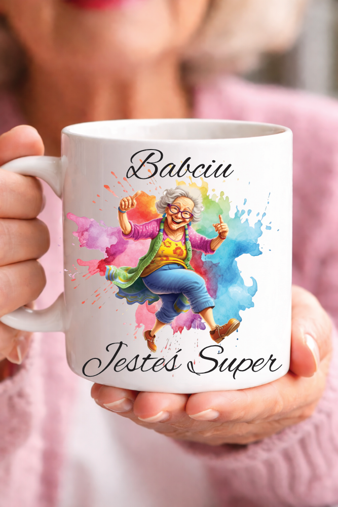 Kubek „Babciu, Jesteś Super” to połączenie ciepłych emocji, kolorowej ilustracji i praktycznego upominku, który będzie towarzyszył Babci każdego dnia